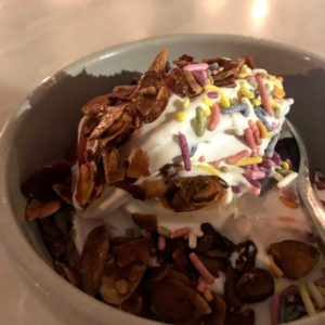 Sundae Sundae with vanilla bean and strawberry sorbet swirl, candied almond, and sprinkles, Tartine Manufactory Post author By Hillary Weller Post date May 6, 2018 No Comments on Sundae Leave a Reply Cancel replyYour email address will not be published. Required fields are marked *Comment * Name * Email * Website Δ