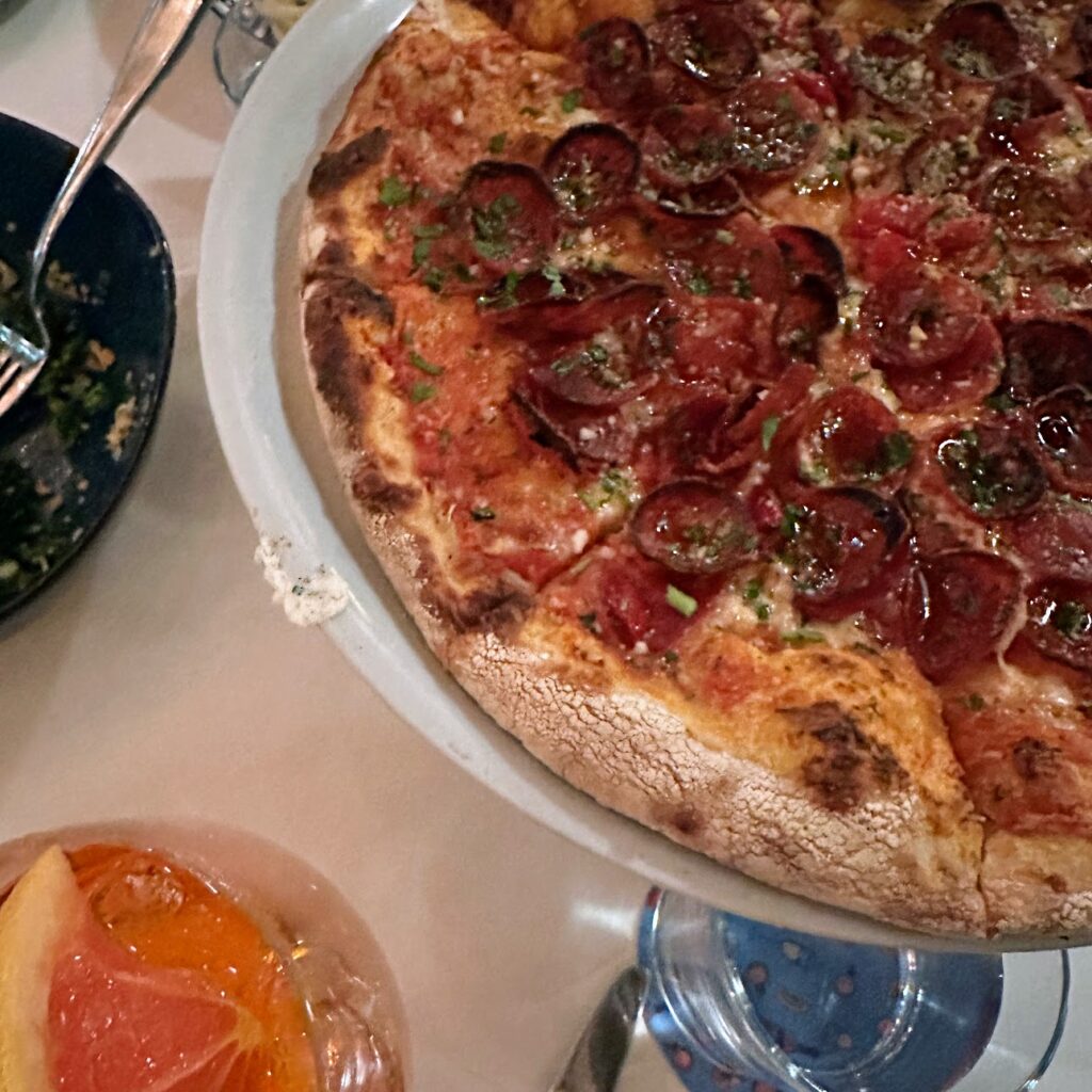 Charred pepperoni pizza