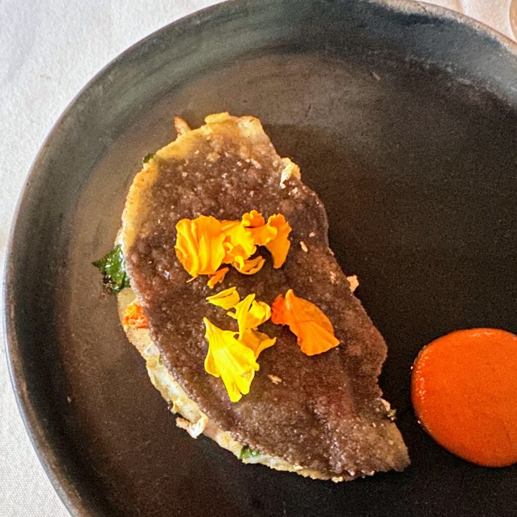 Veal and shrimp tartare from lunch tasting menu