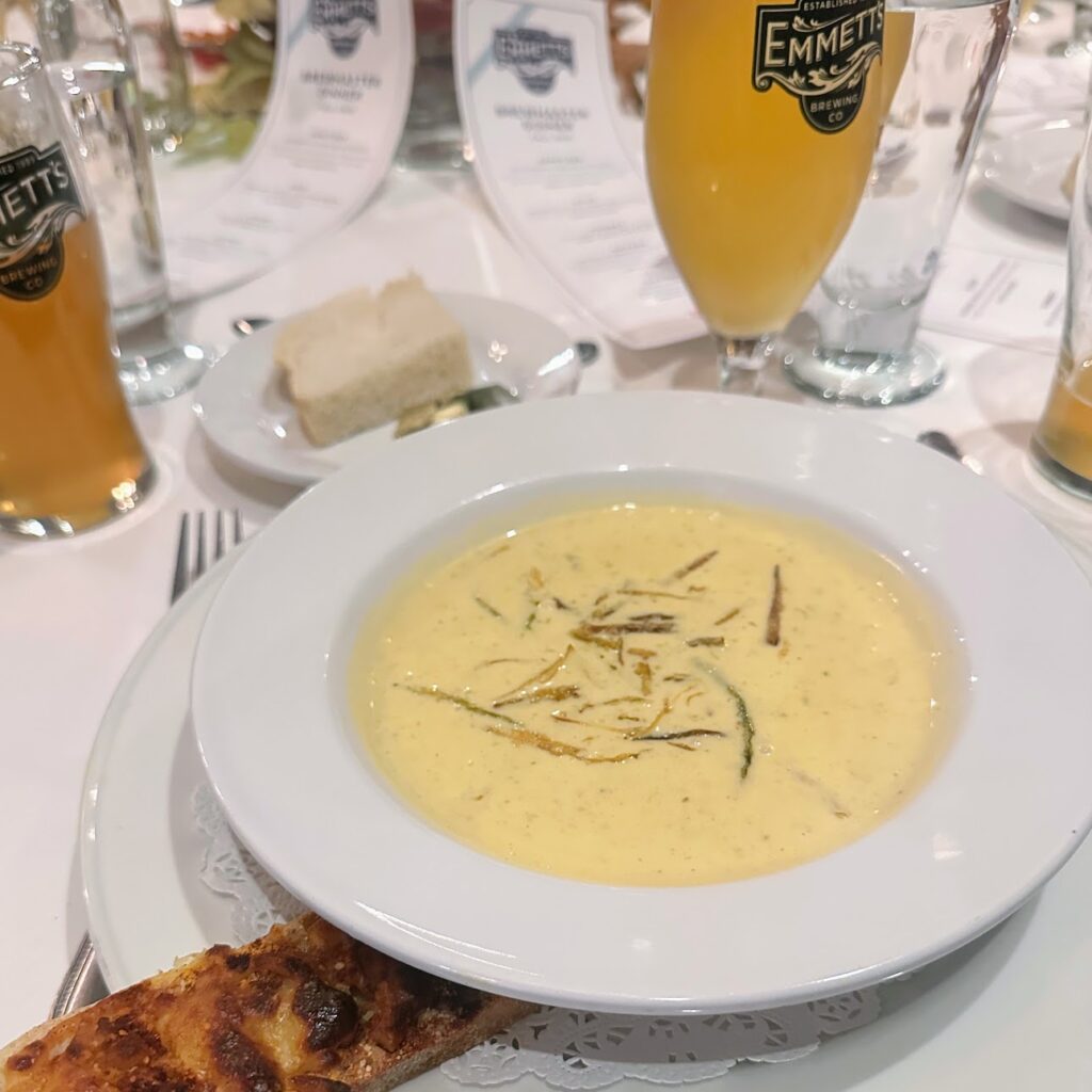 Smoked gouda and leek bisque during fall brewmaster dinner