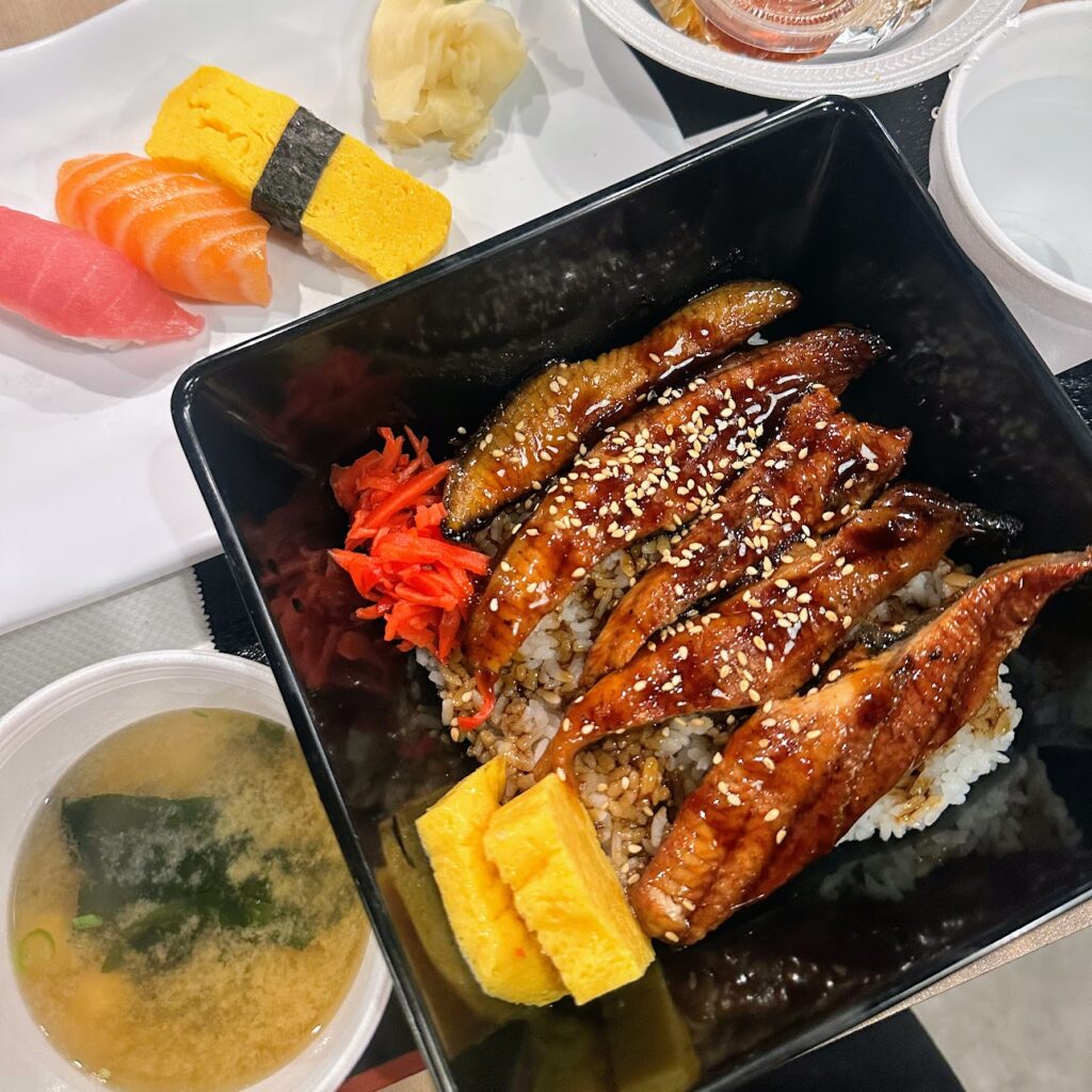 Unaju, miso soup, and assorted nigiri