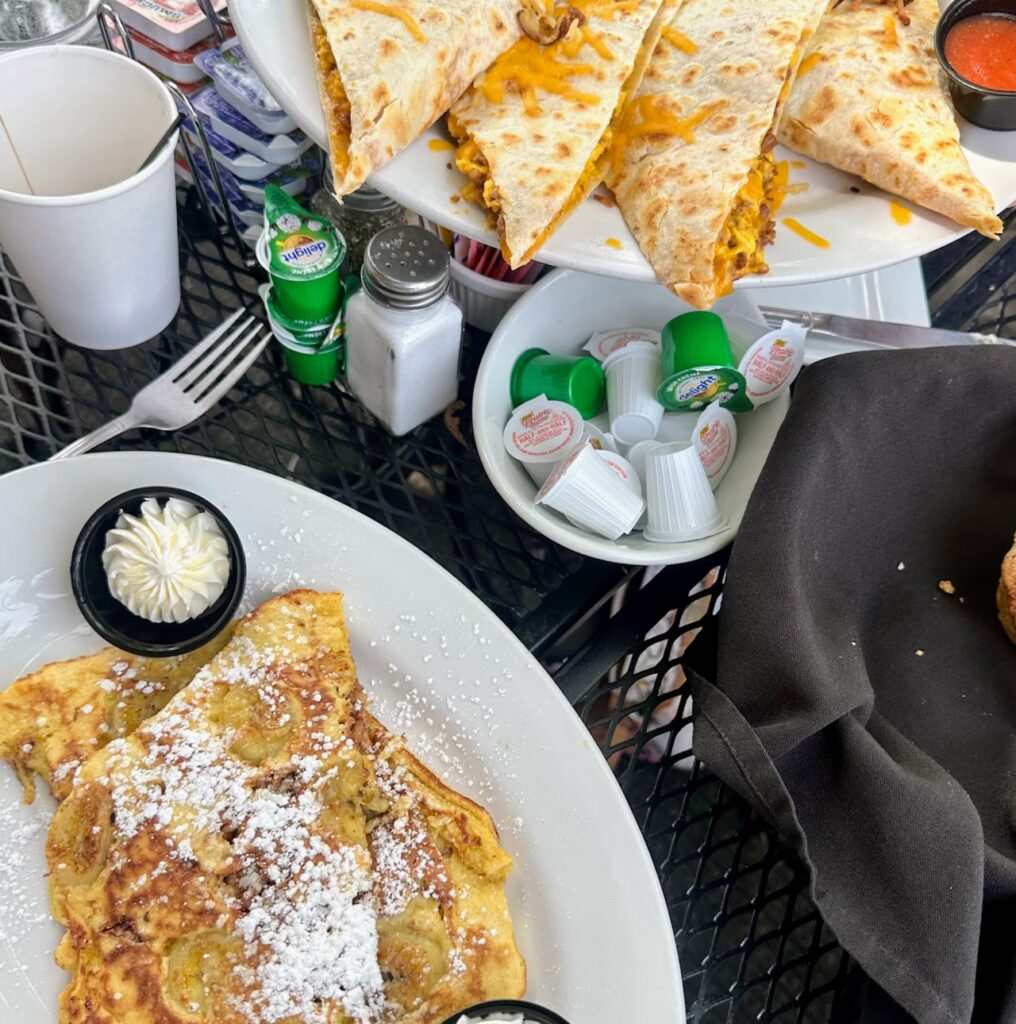 Banana French batter pancakes and breakfast quesadilla