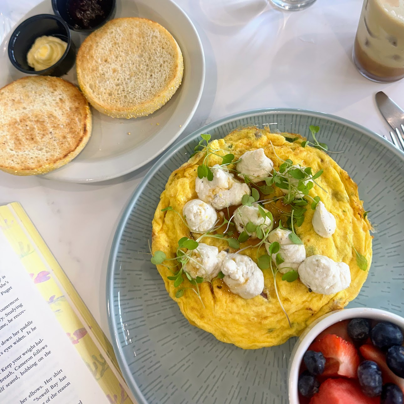 Fig frittata with english muffin and fruit